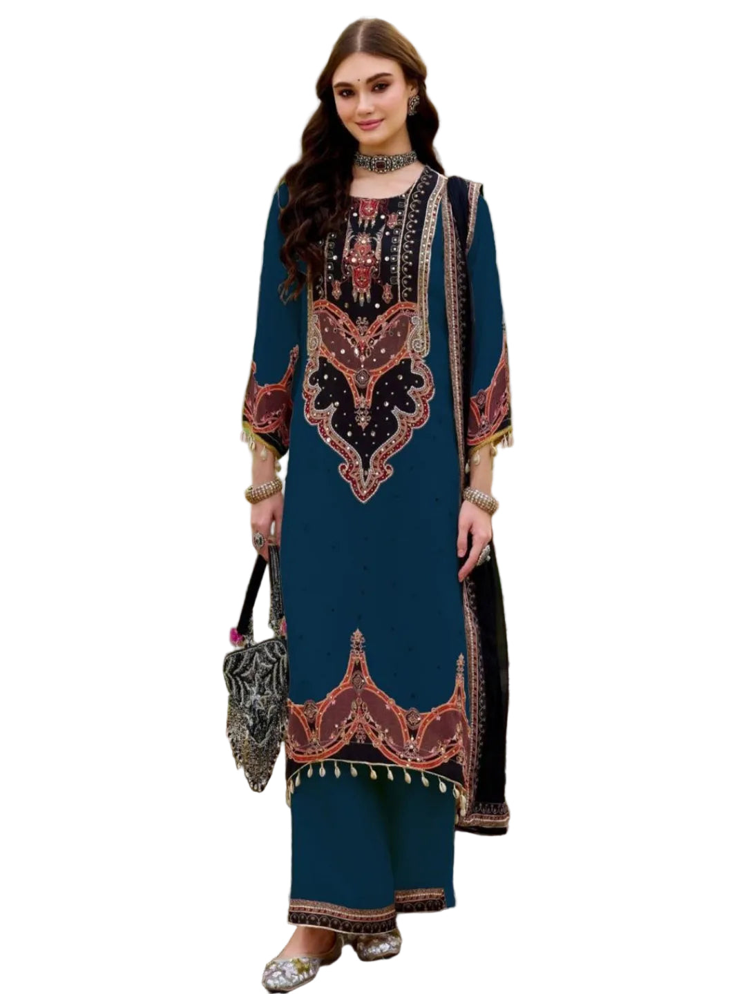 RE Designer 9000 Velvet Embroidered Suit Set with Sequin Work & Pearl Lace Dupatta (M-XXL)