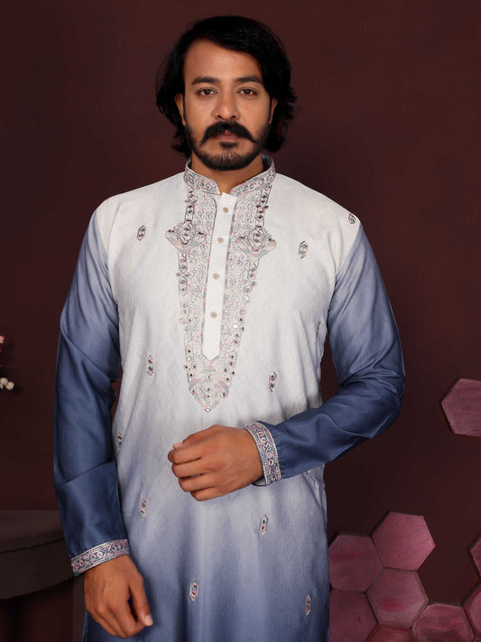 RE Men's Premium Cotton Silk Kurta Pajama Set with Mirror & Embroidery Work