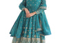 Elegant silver crunchy gown featuring intricate sequin embroidery and a voluminous 3-meter flare. Includes matching dupatta with designer lace border. Full sleeves, round neck, and complete cotton lining ensure comfort and durability. Available in sizes M to XXL. Perfect for festive occasions and celebrations.