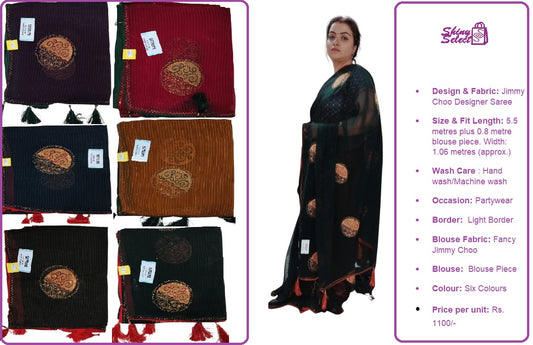 Jimmy Choo, a renowned luxury fashion brand, hasn't officially launched a dedicated saree collection. However, you might find designer sarees inspired by Jimmy Choo's aesthetic or collaborations with Indian designers that incorporate elements of the brand's signature style.
