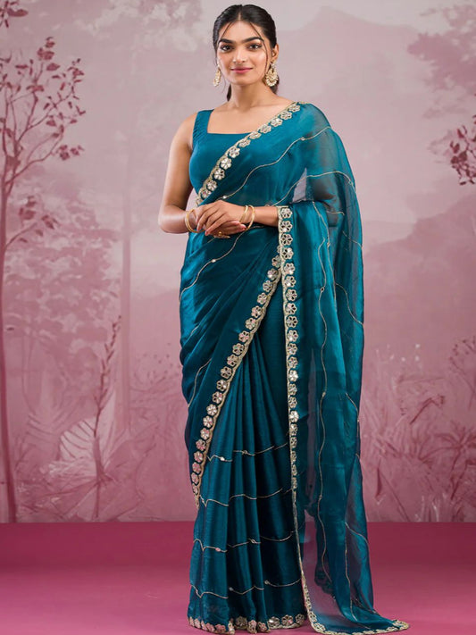 ES Premium Jimmy Chu Silk Saree with Unstitched Blouse