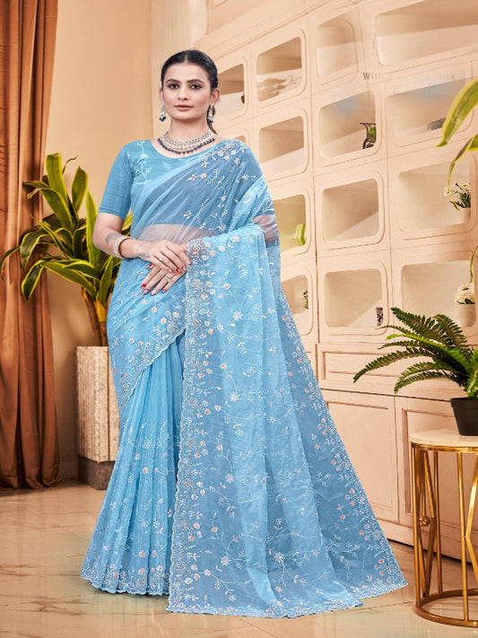 • Luxurious Fabrics: Often made from high-quality fabrics like georgette, chiffon, or net, ensuring a comfortable and elegant drape.
