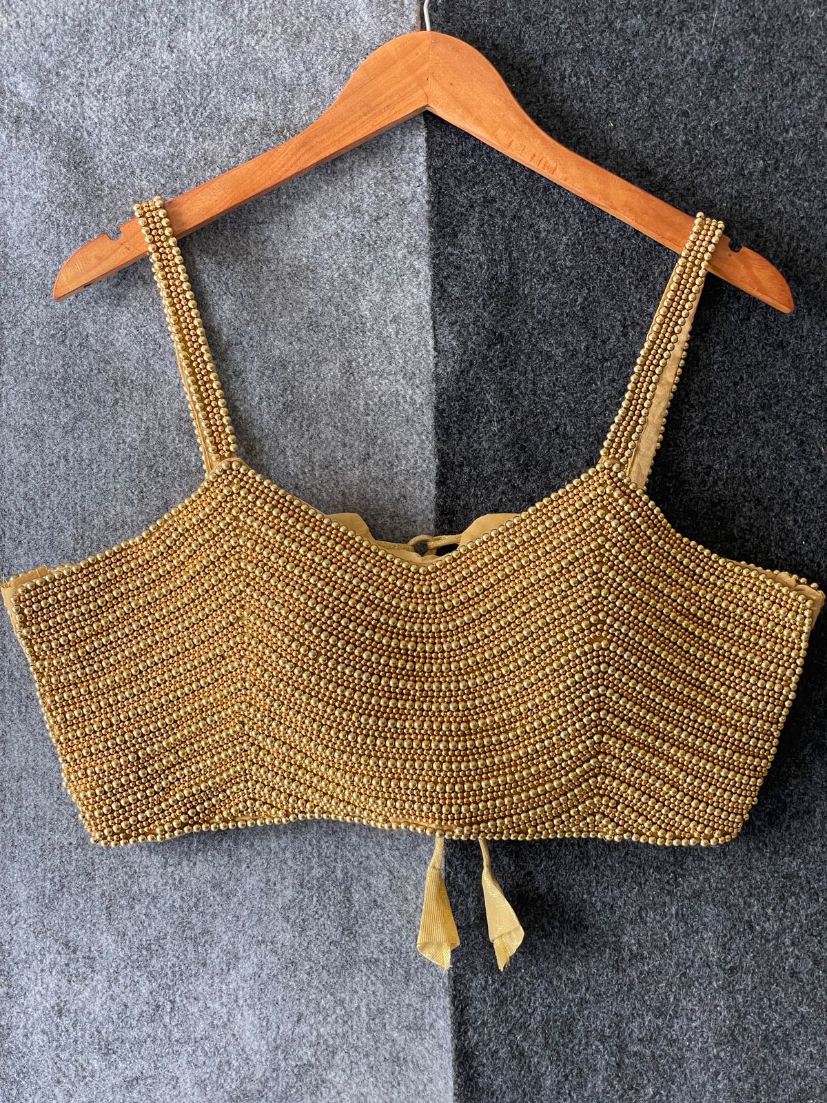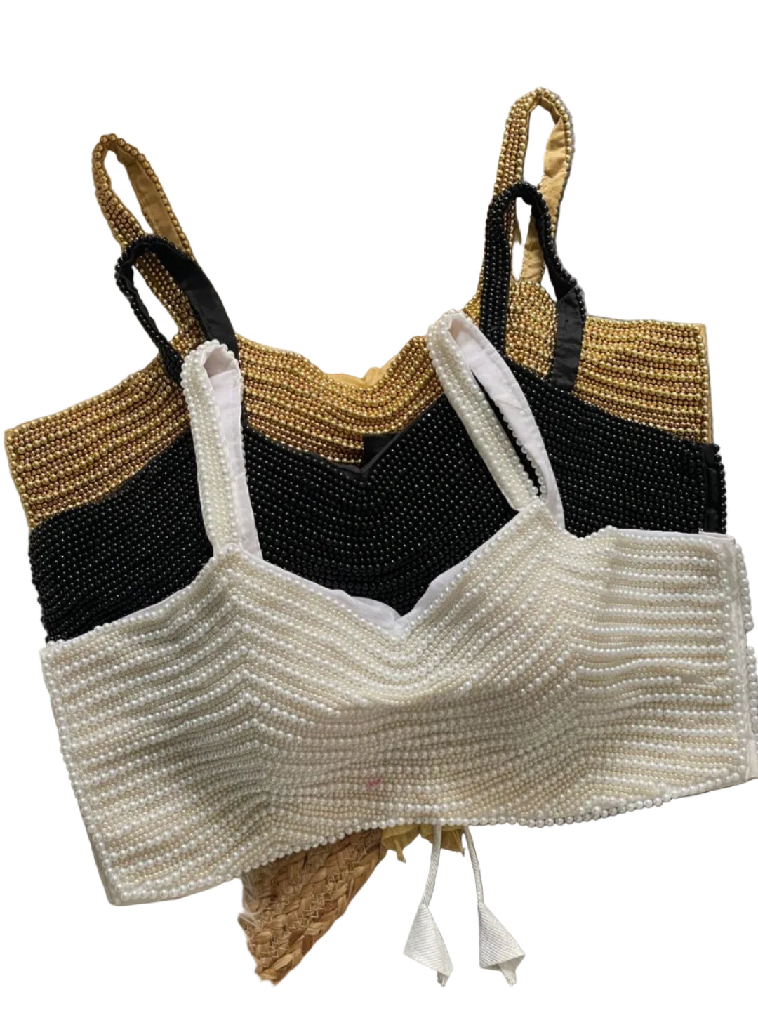 ES Designer Pure ES Designer Pure Silk Spaghetti Blouse with Handcrafted Pearl (Moti) Work