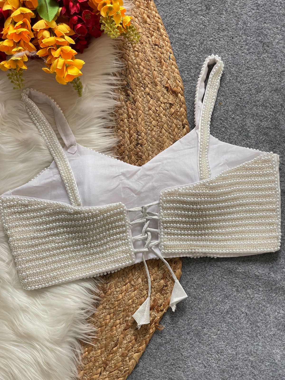 • Intricate Pearl Work: Heavily embellished with hand-placed pearls for a 3D texture.