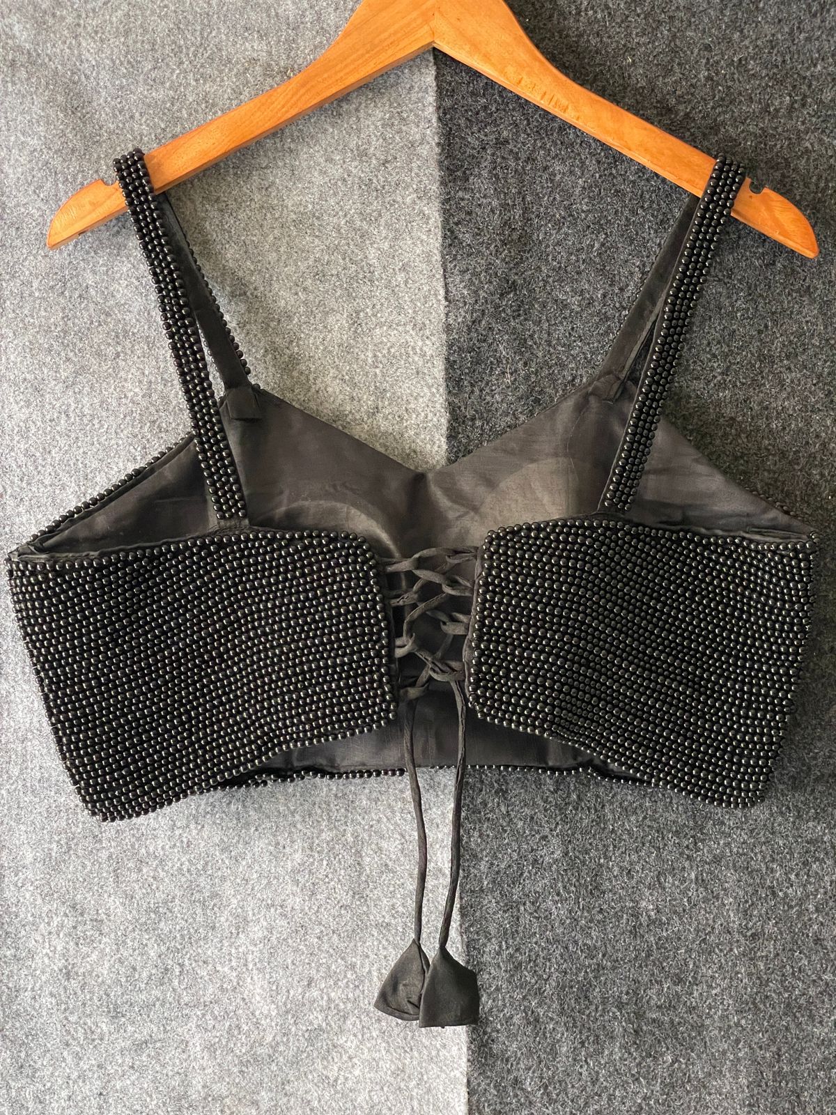 ES Designer Pure Silk Spaghetti Blouse with Handcrafted Pearl (Moti) Work