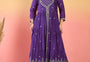 वरंगा महिलाओं का बैंगनी रंग का सिल्क ब्लेंड योक डिज़ाइन कुर्ता, शरारा और कढ़ाईदार दुपट्टे के साथ।