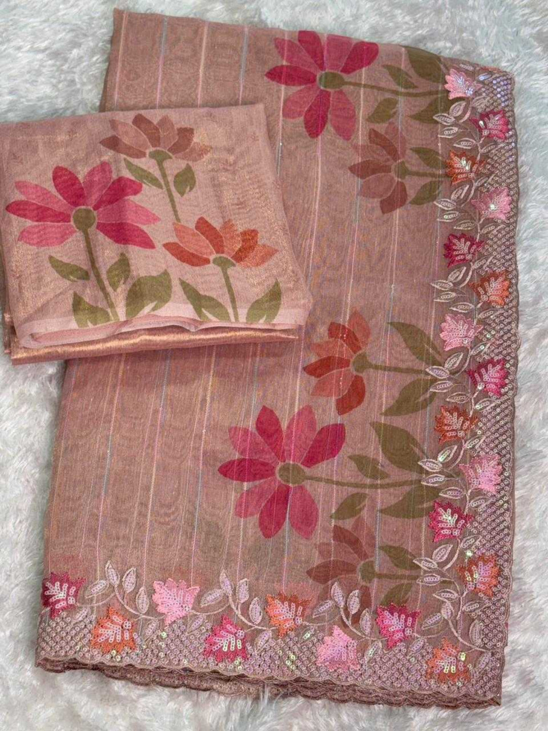 - उत्कृष्टसेक्विन कढ़ाईबहुरंगी के साथधागे का कामपूरी साड़ी में।