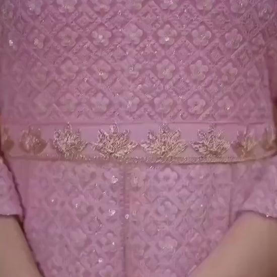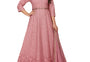 Elegant gown crafted from premium Fox Georgette with detailed embroidery and inner lining for a flattering fit. Paired with a flowing Heavy Najmin dupatta featuring a delicate four-sided lace border. Available in Soft Rose Pink, Emerald Green, Slate Gray, and Royal Wine; sizes S–XL.