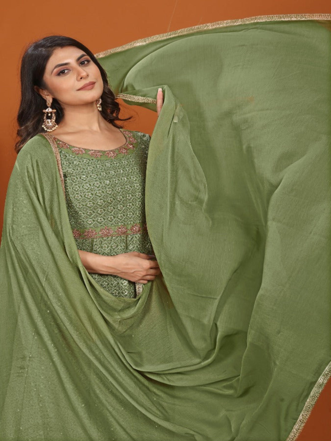 MV Premium Fox Georgette With Heavy Embroidery Work Gown & Dupatta