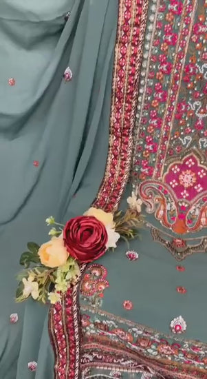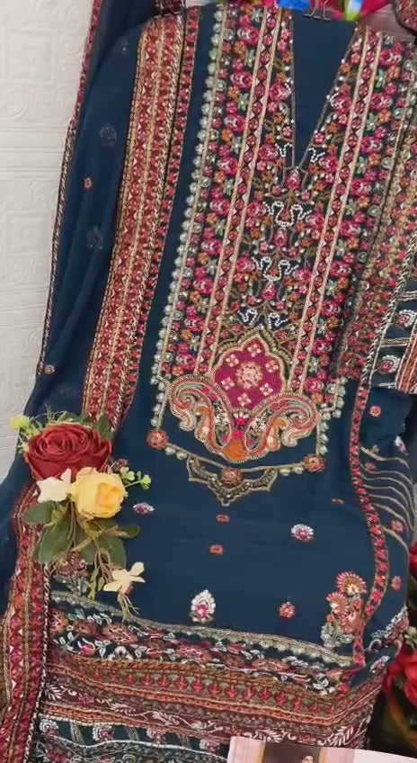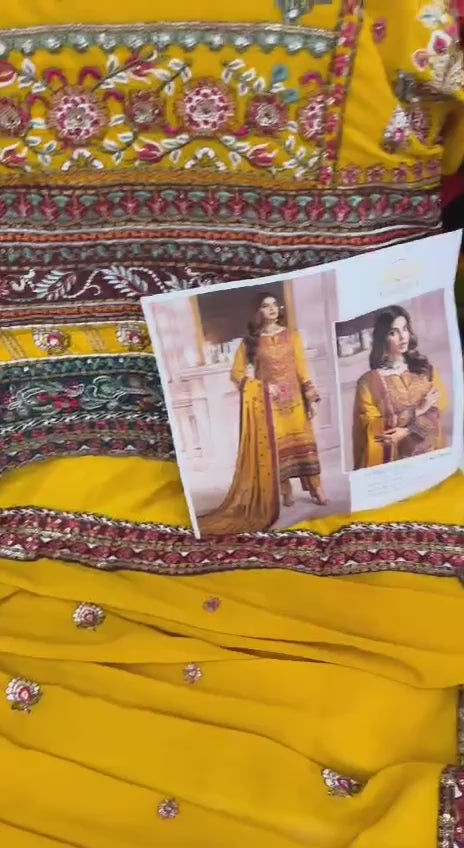 YNF Designer Heavy Faux Georgette Unstitched Suit Material with Sequence Embroidery